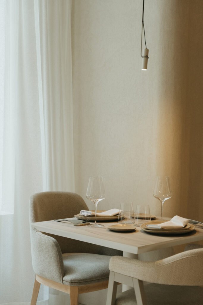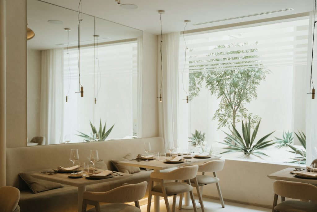 En nuestro restaurante cada rincón está cuidadosamente diseñado para ofrecerte una experiencia acogedora y auténtica. Materiales nobles, luz natural y una atmósfera serena se combinan para crear un entorno cálido, contemporáneo y lleno de personalidad.